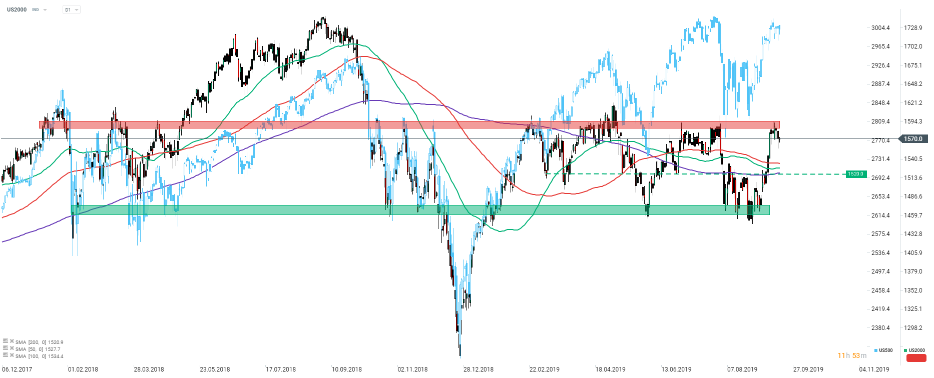 Russell 2000 (US2000) fails to break above key resistance zone