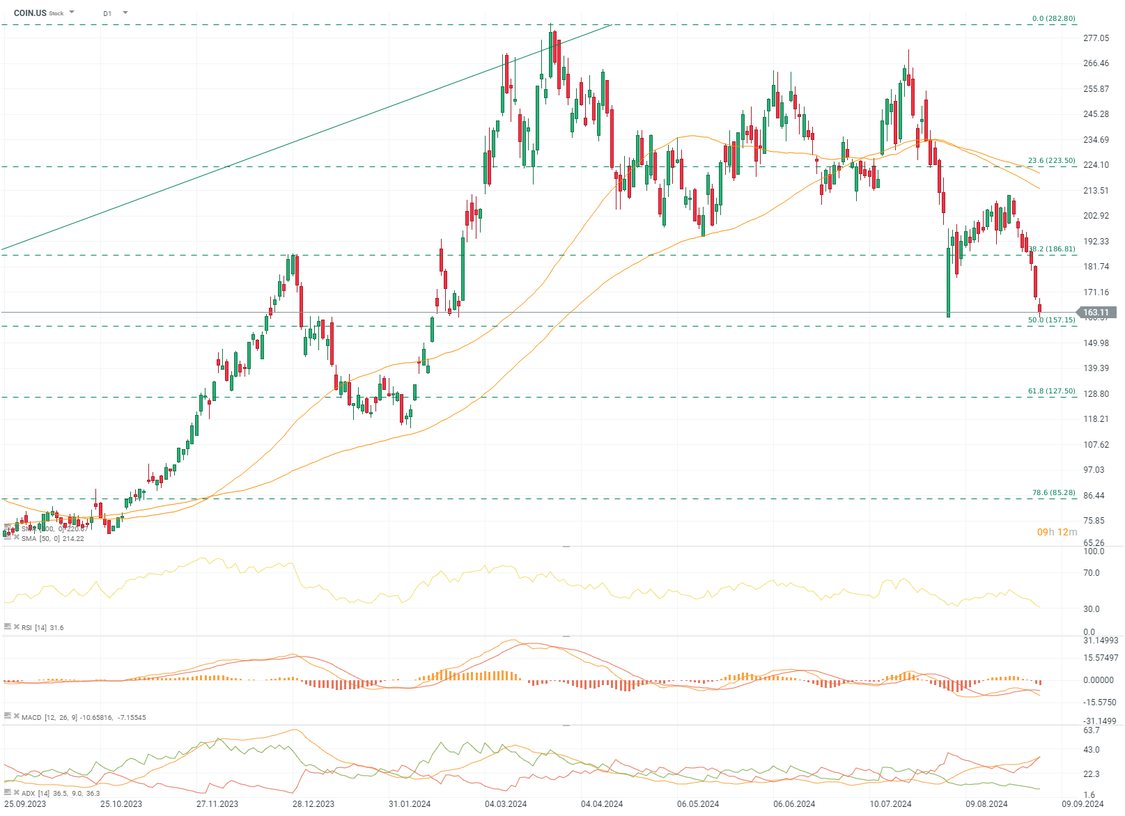 Coinbase shares are currently trading at $163, down more than 13% this week, reflecting ongoing volatility in the cryptocurrency market and regulatory uncertainties. This comes after the company reported Q2 2024 results and has been actively involved in political spending ahead of the 2024 U.S. elections.
