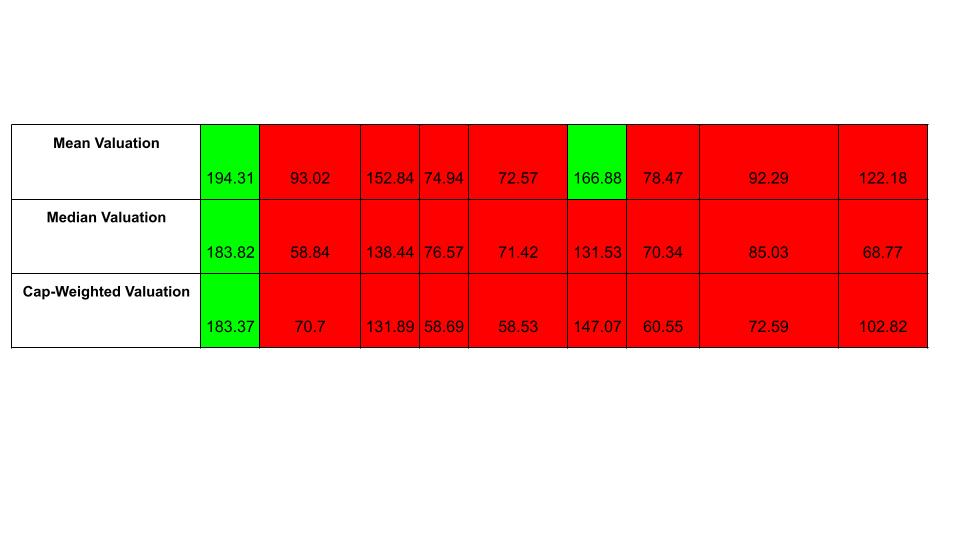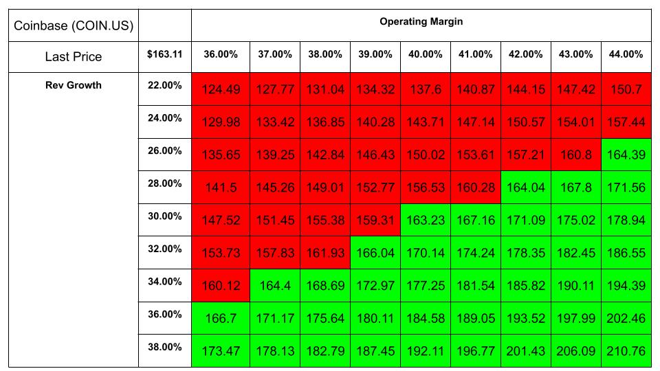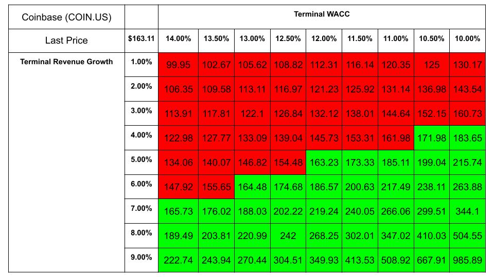 We have calculated mean, median as well as cap-weighted multiples for the peer group. Three different Coinbase valuations for each of those multiples were later calculated. As one can see in the table below, the vast majority of those suggest that Coinbase shares are overvalued at current prices.