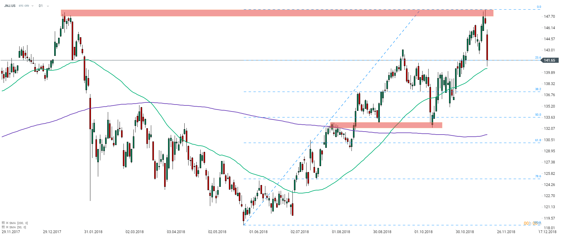 Johnson & Johnson (JNJ.US) stock managed to resist downward pressure seen lately on the US stock market. However, the price pulled back recently from the all-time-high at 148.70 USD. Nevertheless, the decline was halted at the 23.6% Fibo level of the upward impulse started in late-May. Source: xStation5