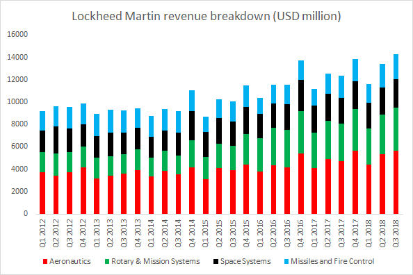 Various media outlets have published reports earlier this year saying that there are flaws in the F-35 production process that ultimately result in late deliveries of planes to the US military facilities. The Defence Contract Management Agency later confirmed those rumours in a statement to Bloomberg News saying that 7 out of 91 planes that were scheduled for delivery in 2018 won’t make it on time. While investors were worried whether the US government will scale down F-35 orders the Pentagon announced new contract for 141 aircrafts worth $11.5 billion. The announcement came in September and it was the biggest F-35 deal up to that date. Just 2 months later the US defense officials went on another shopping spree. Earlier this week Pentagon announced that it will award Lockheed with another contract - this time for 255 F-35s. The value of the deal was not clearly specified yet but the “not-to-exceed” threshold for this deal was set at $22.7 billion. Deliveries of aircraft ordered under this deal will begin in 2020. It is worth to mention that the US government already paid Lockheed a down-payment of $6 billion for the first 106 jet fighters under the deal. Given that this deal is likely to be recognized in the Lockheed’s financial statements over the period of at least few years, the customers’ satisfaction and the fact that only around 10% of planned purchases were delivered and majority of planned purchases was not even signed yet the whole F-35 programme is set to be boosting company’s sales and earnings during at least the next decade.