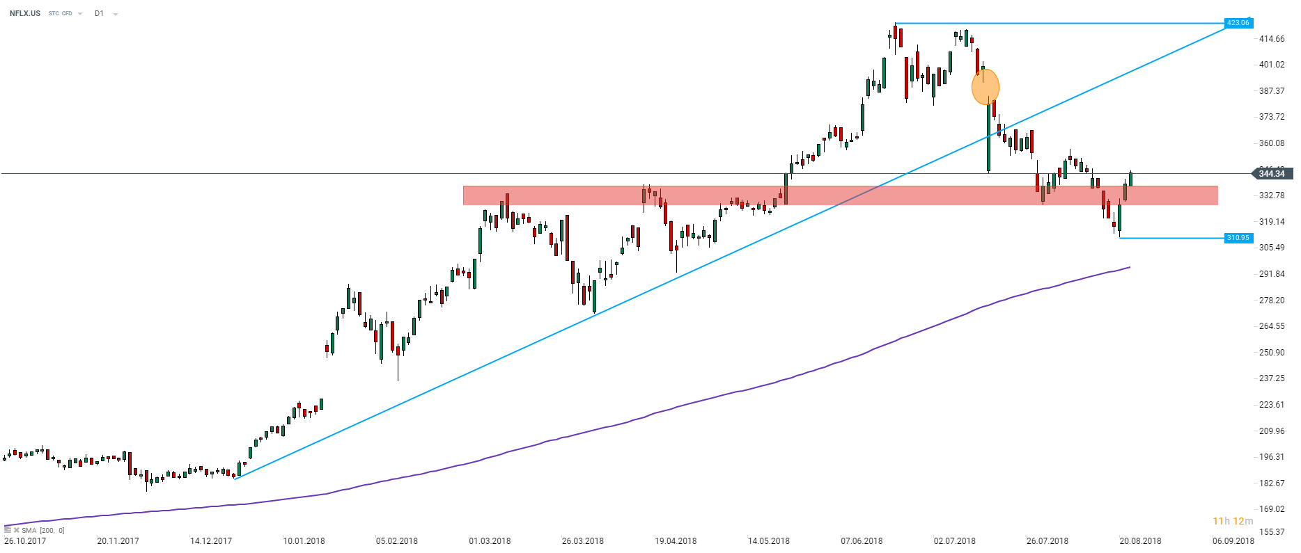 So as we have already explained what was the cause of the short term downtrend the stock has been trading in recently, let’s move to this week’s news. According to TechCrunch, an American technology online publisher, Netflix is testing the payment solution that would enable company to stop using App Store for collecting payments. The information is said to be confirmed by the company. Speaking in detail, Netflix is conducting tests of a solution that would redirect customers, that try to renew or sign up for subscription, to the web app outside of App Store. The solution is being tested in some of the European, Asian and Latin American markets (33 countries in total) and the “experiment” is said to last until the end of September.