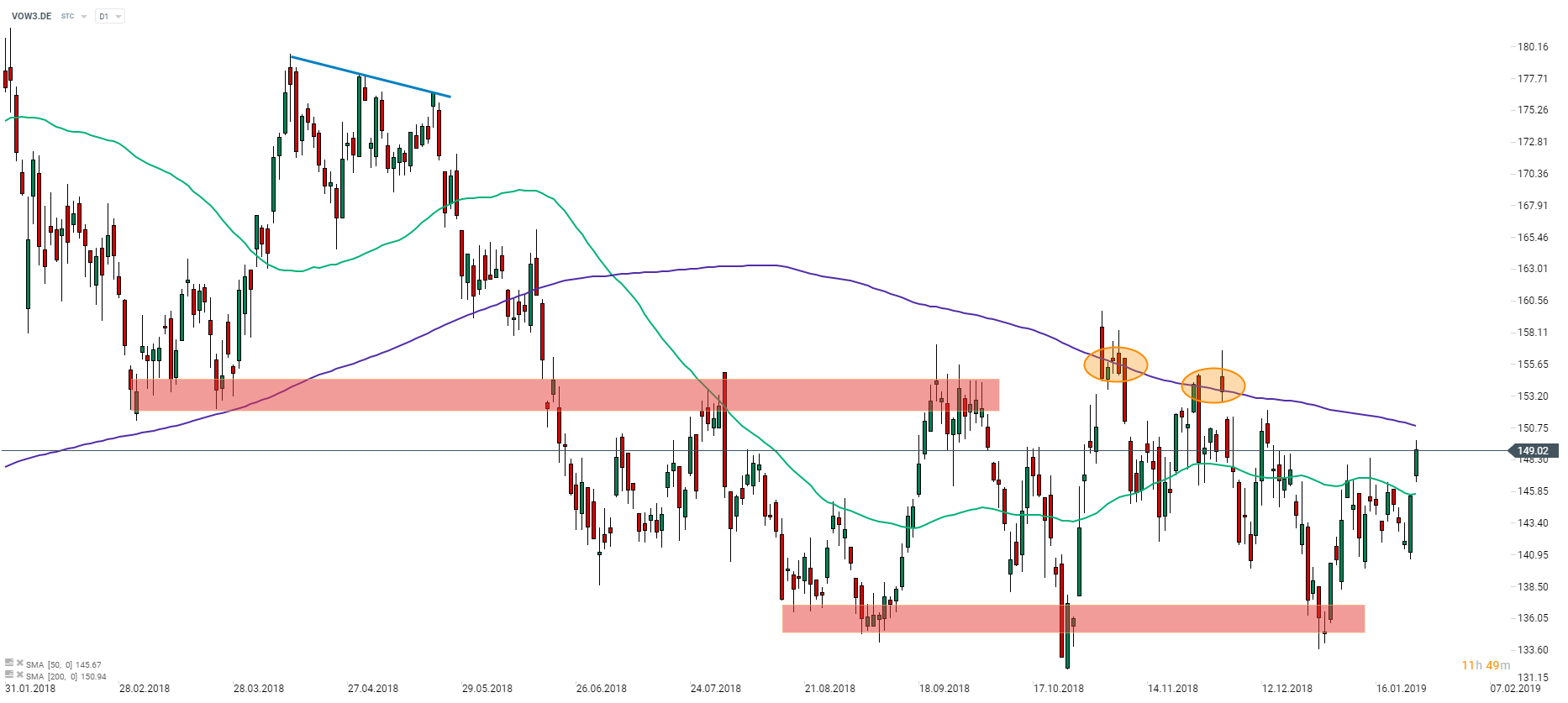 Volkswagen (VOW3.DE) stock broke above 50-session moving average and trades slightly below €150 handle