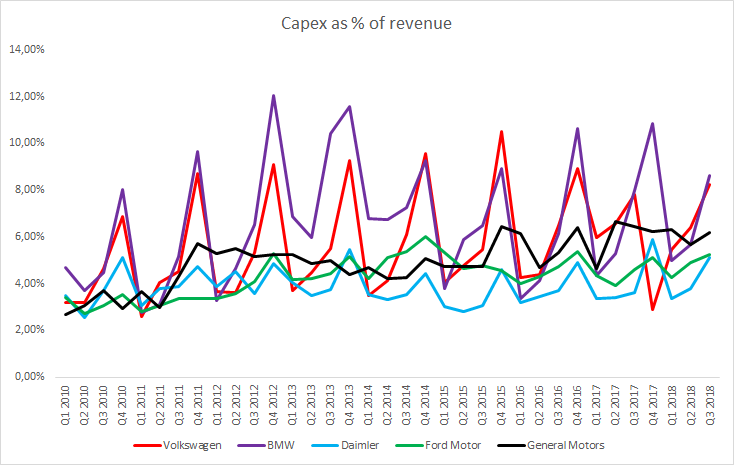 There is a strong seasonal pattern when it comes to capital expenditures within the car industry. Volkswagen, along with BMW, are among companies pulling out the biggest investment in the busiest quarters. Source: Bloomberg, XTB Research