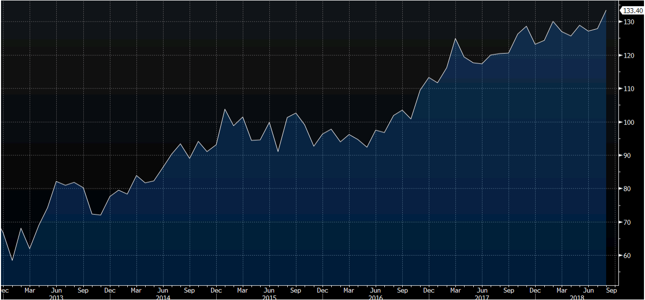 Consumer confidence in the US continues to excel, with the conference board measure for August reaching its highest in many years. Source: Bloomberg