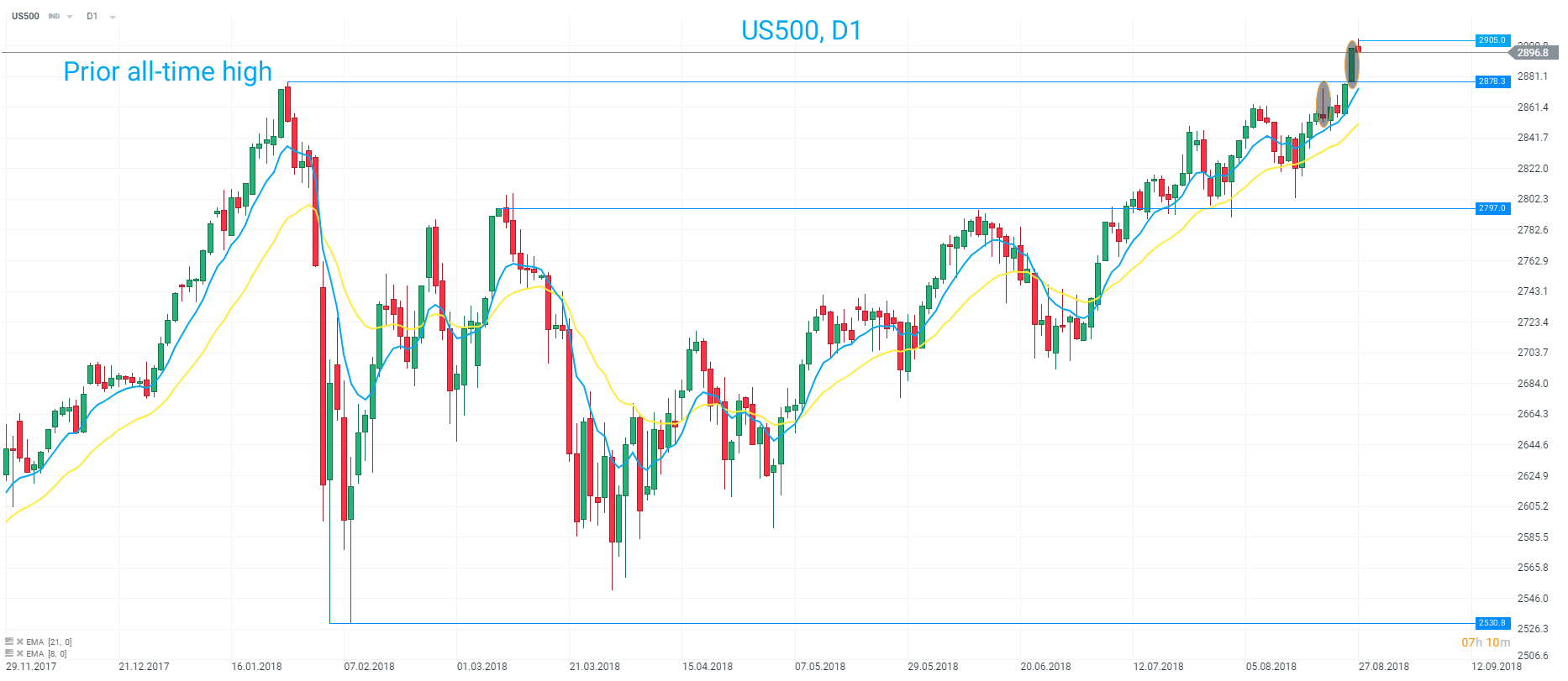 The US500 has broken above its previous peak of 2878 and while price remains above this level then the breakout is valid and the path of least resistance could be seen to be higher. Source: xStation