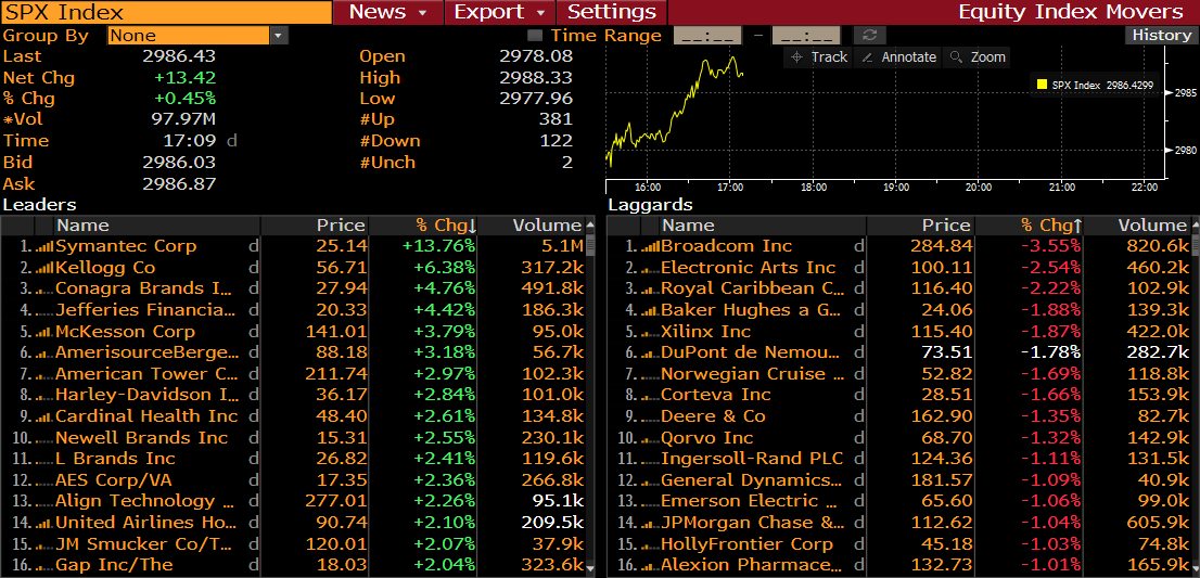 S&P 500 movers at 4:09 pm BST. Source: Bloomberg