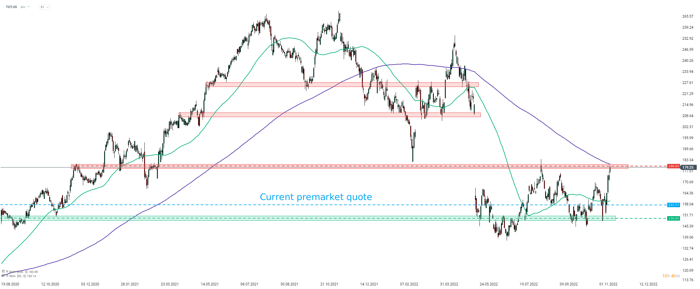 Target Corporation (TGT.US), one of large US retailers, reported earnings for fiscal Q3 2023 today ahead of the Wall Street session open today. While the company managed to beat sales expectations, it missed significantly on profit expectations. Moreover, company gave a gloomy outlook for consumer trends in November-January holiday period, what sent shares over 10% lower in premarket. Let's take a quick look at earnings report from Target.