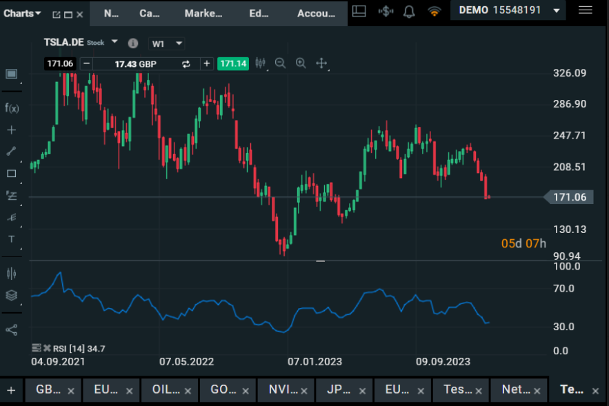 Chart: Tesla price chart and RSI indicator, Source: XTB XStation