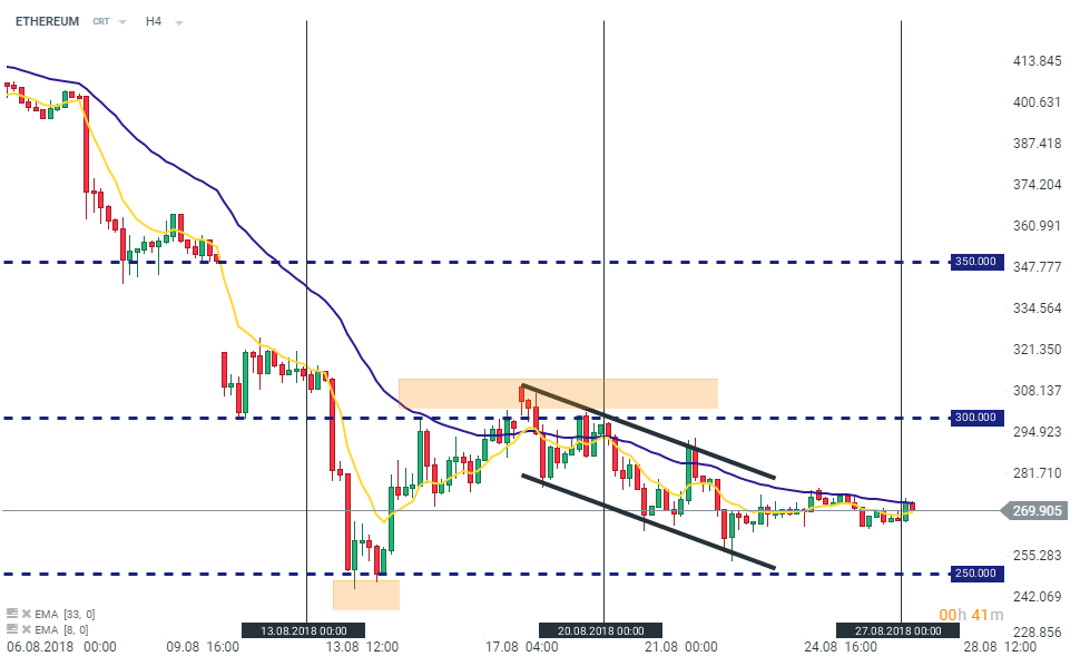 At press time, ETHEREUM is still fluctuating in the vicinity of $270, moving a little below the 33-period moving average on the H4 interval (a purple line on the chart) which could be a notable roadblock for ETHEREUM in the next days. Source: xStation5