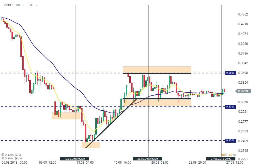Over the weekend RIPPLE, like Ether, was calming down. On Monday morning, the cryptocurrency stands a notch above the $0.32 handle. Will RIPPLE reach its equilibrium point? Source: xStation5