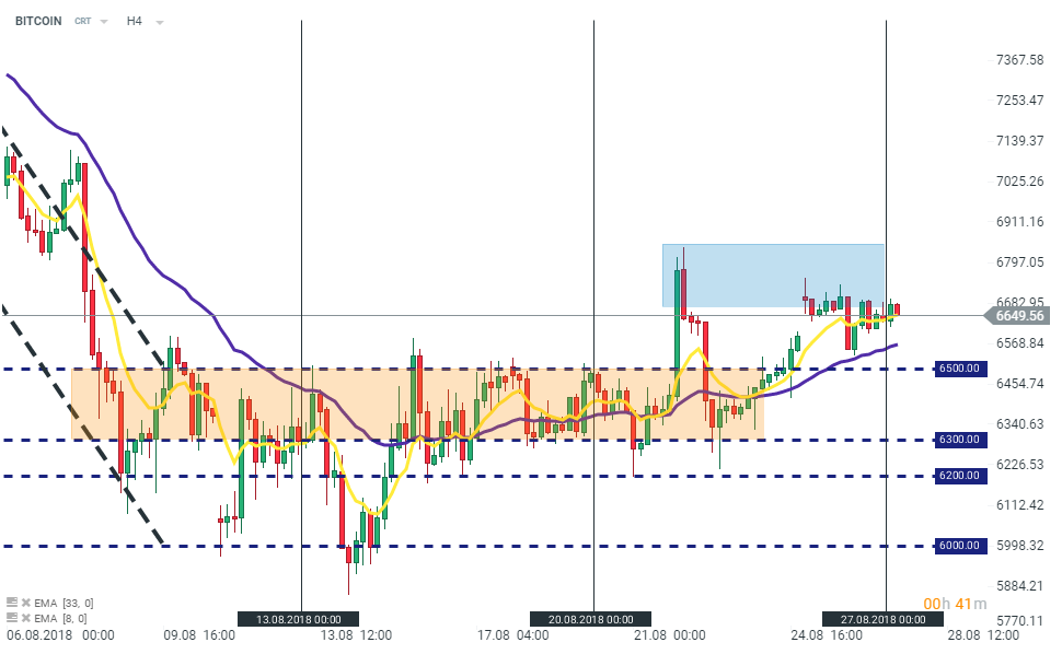 On Friday, BITCOIN smoothly broke the $6500 handle, and it reached the $6650 mark. The cryptocurrency is trading a notch above this level at press time. BITCOIN seems to be halted by the $6700 level hence it may be a key point in the nearest future. Source: xStation5