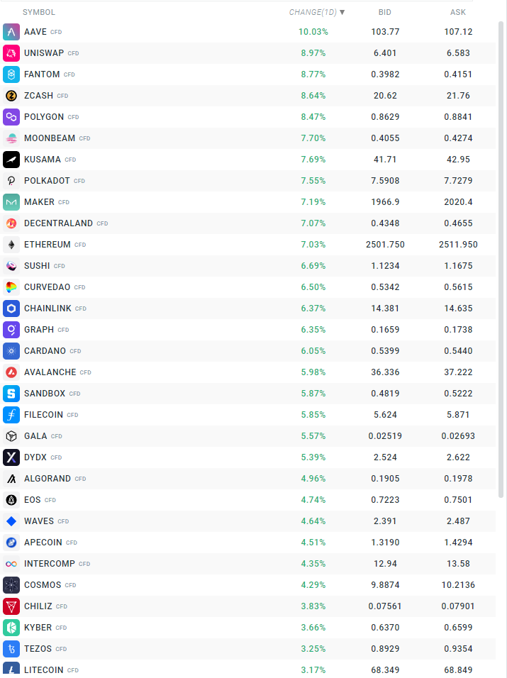 Bitcoin is losing slightly at the moment, but the reaction in this case is almost negligible. Ethereum, on the other hand, is seeing clear gains and the cryptocurrency is breaking out to new local highs. Source: xStation