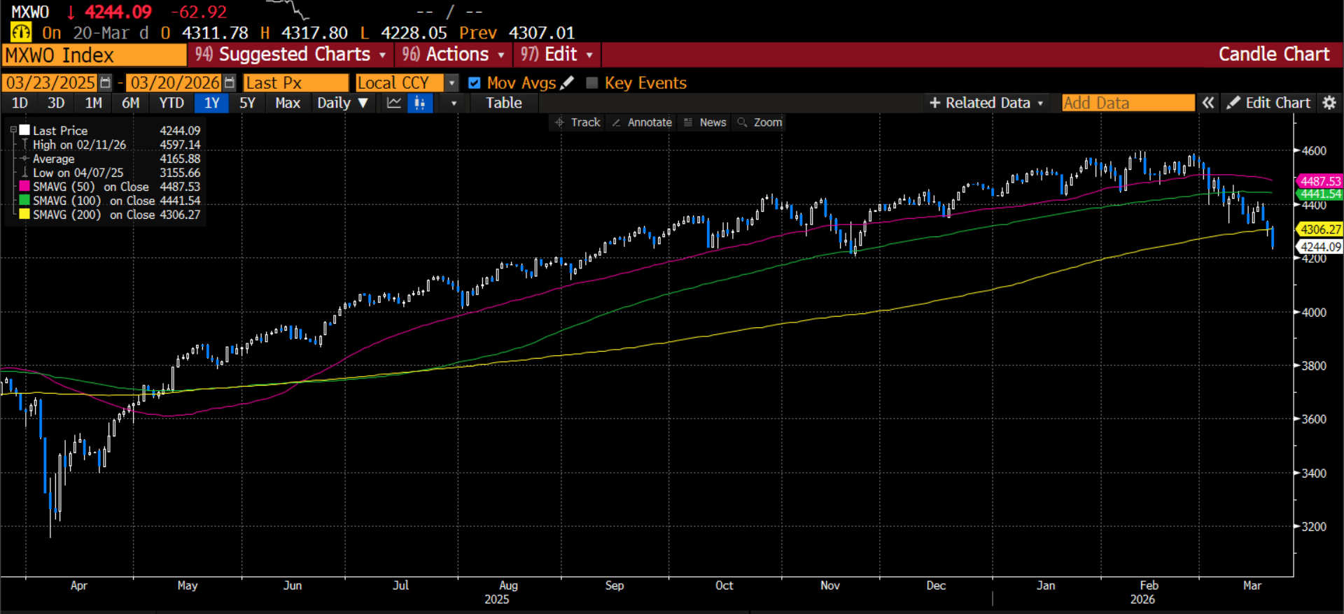 Chart 1: MSCI World Index, below its 200-day sma