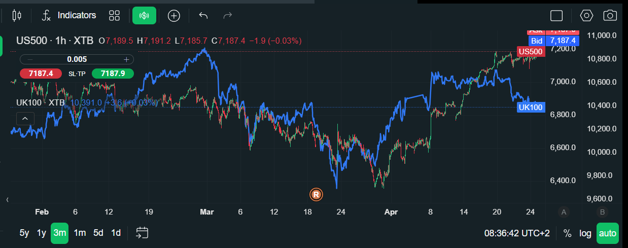 This may also help US stocks to continue to outperform their European counterparts. The Nasdaq closed higher by nearly 2% on Friday, led by Intel, which jumped 23% after a positively received earnings report that cements its position as a key AI player in 2026. The Nasdaq rose by 2.4% last week, the S&P 500 was higher by 1.28%. This compares with a 2% decline for the FTSE 100 and a 0.1% drop for the Dax. Tech is leading the market higher in the US, and the issue for Europe is that it is light on tech. The European market is also a growth taker market, this means that it relies on strong global growth and global themes to drive returns. With the oil price remaining elevated, and global growth threatened, this will limit European stock market upside. In contrast, US tech is rising on the back of lower interest rates, a falling oil price, continued AI spend and hopes that the AI theme has further to run.