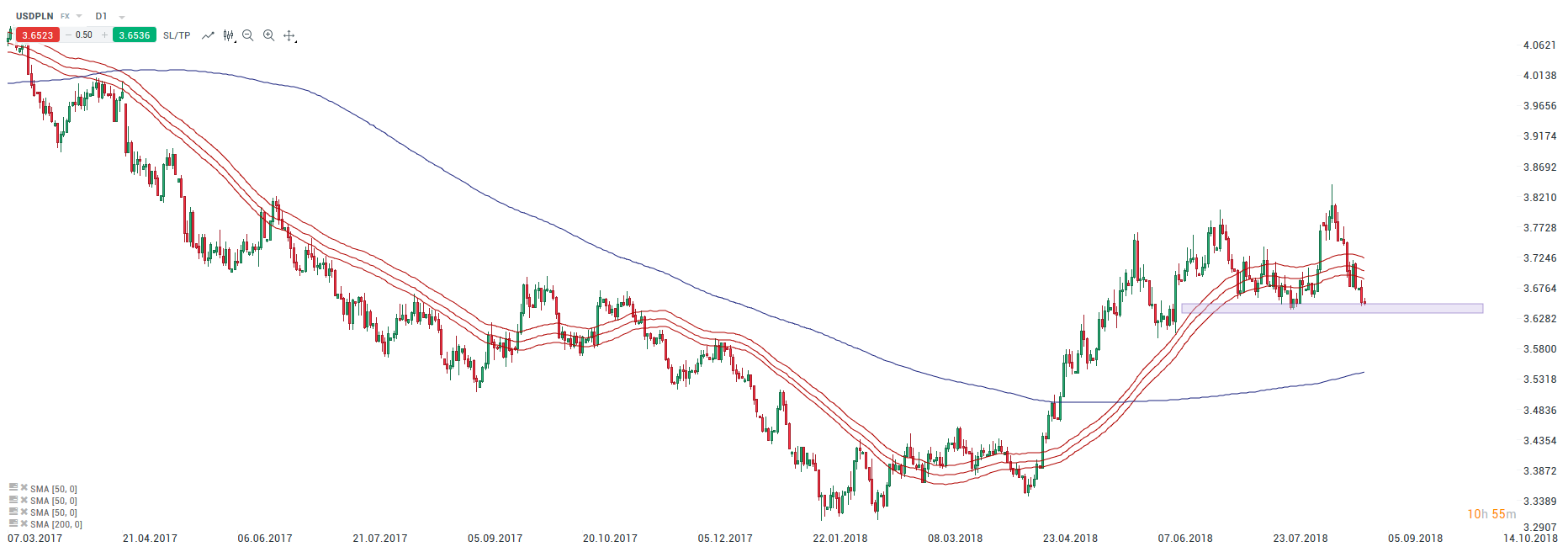 A test of 3.65 will be very important for USDPLN. Source: xStation5