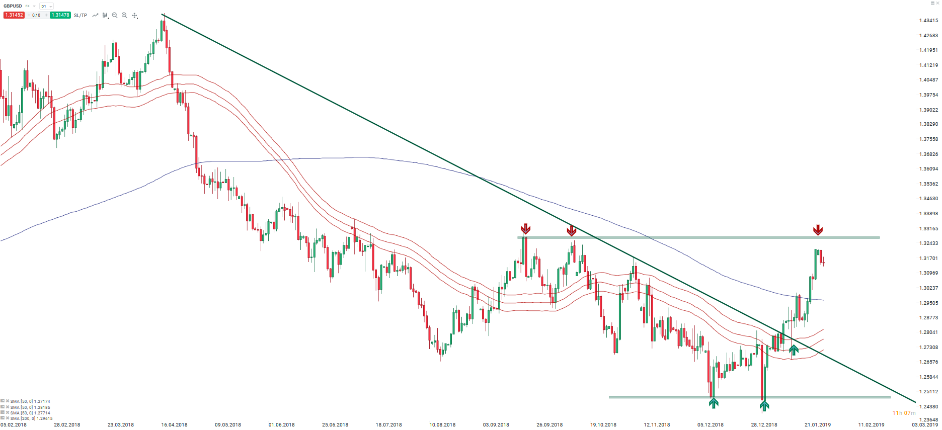 When it comes to the FX market, the British pound continues to be in the spotlight. GBP remains to be sensitive to any headlines relating to the Withdrawal Agreement. The UK Parliament will vote on the so-called “Plan B” today but odds suggest that the political impasse is likely to prevail. On the other hand, in case the parliament votes for amendments proposed by MPs the UK PM Theresa May will have to go back to Brussels to renegotiate terms of the deal. Diminishing chances of no-deal Brexit support GBP recently allowing GBPUSD to visit 1.3280 area. From the technical point of view, the pair may now erase some of the latest gains and even pull back towards the 50-session moving averages channel. Moreover, it should be noted that tomorrow’s FOMC meeting may have big impact on the USD and in turn on GBPUSD as well.