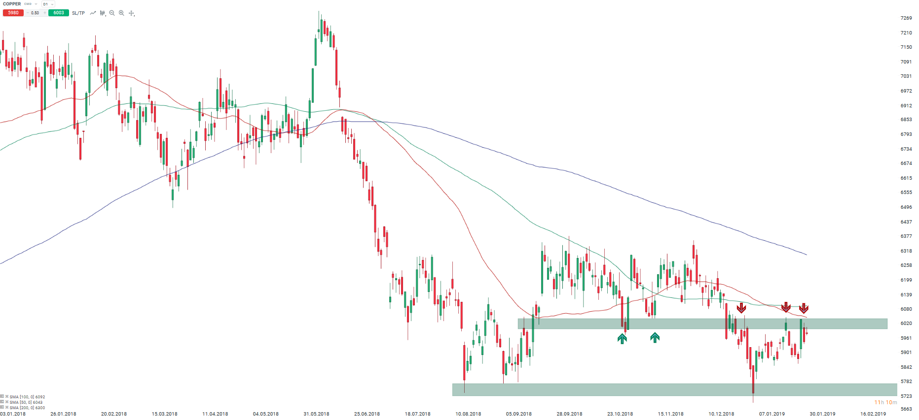 As the trade talks are to be resumed tomorrow it may be worth to take a look at the situation on copper market. Prices of commodity are hugely dependant on the condition of the Chinese economy. Negative news concerning trade talks could hint that the Chinese economy could slow further and are likely to exert pressure on copper prices. On the daily frame, copper price rebounded off the lows from mid-2018. However, pace of rally was rather lacklustre and it looks like current improvement of moods may be short-lived. Breakthrough in trade talks seems to be the only chance for copper to produce a longer-lasting upward move.