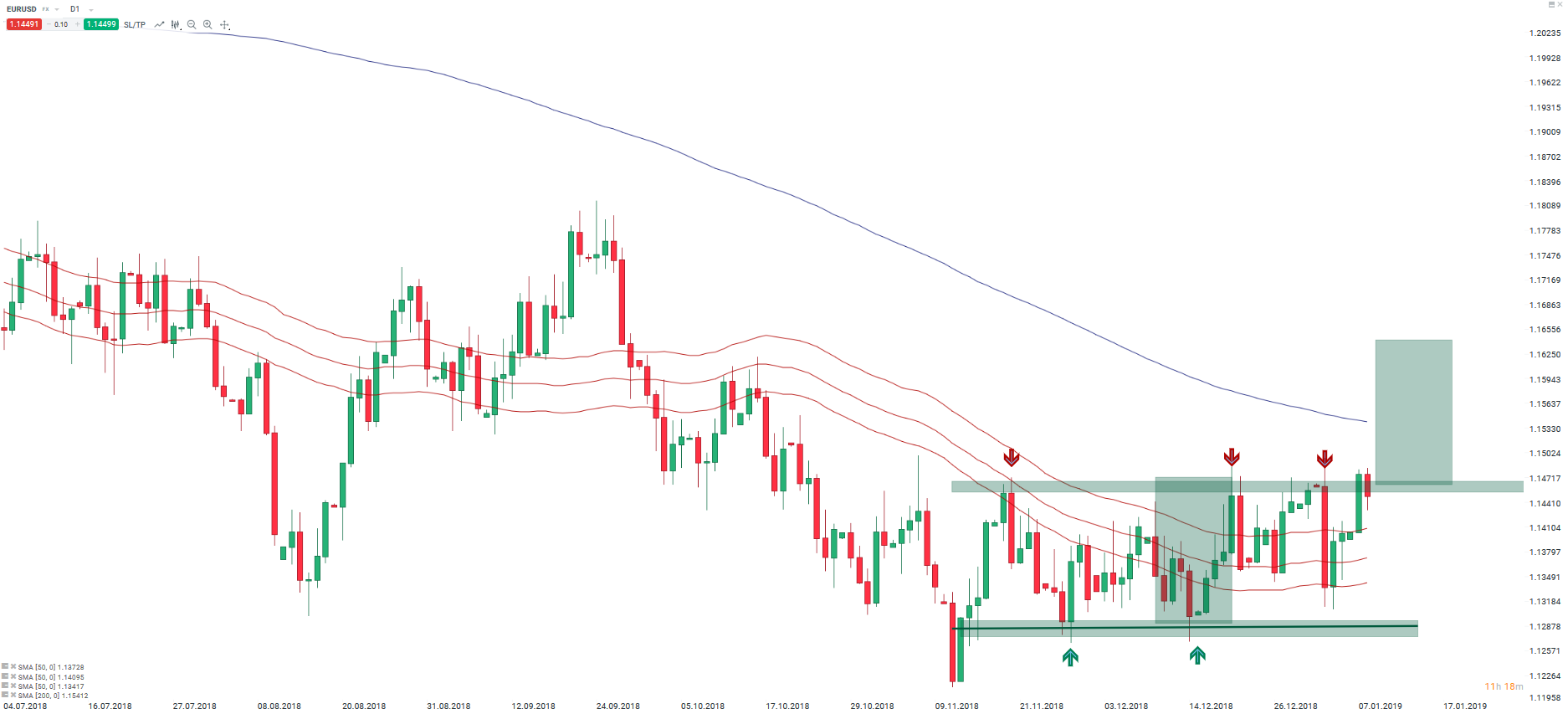 The US dollar underperformed recently as investors digested a potential pause in the monetary tightening cycle. At the beginning of the third quarter of 2018 markets expected Fed to raise interest rates 3 times next year while now market odds seem to favour a rate cut in 2019! The main currency pair still trades within consolidation ranging 1.1300-1.1480. However, price moved towards the upper limit of the range recently. Interest rate derivative market hints at much higher levels and USD failed to resist downward pressure even after release of a stellar jobs report on Friday. Having said that, we may be observing a shift in the USD sentiment. From the technical point of view, bulls may find support at the 50-period moving averages channel. Taking a pause there to regroup may allow buyers to conduct a successful attempt to break above the 1.15 handle.