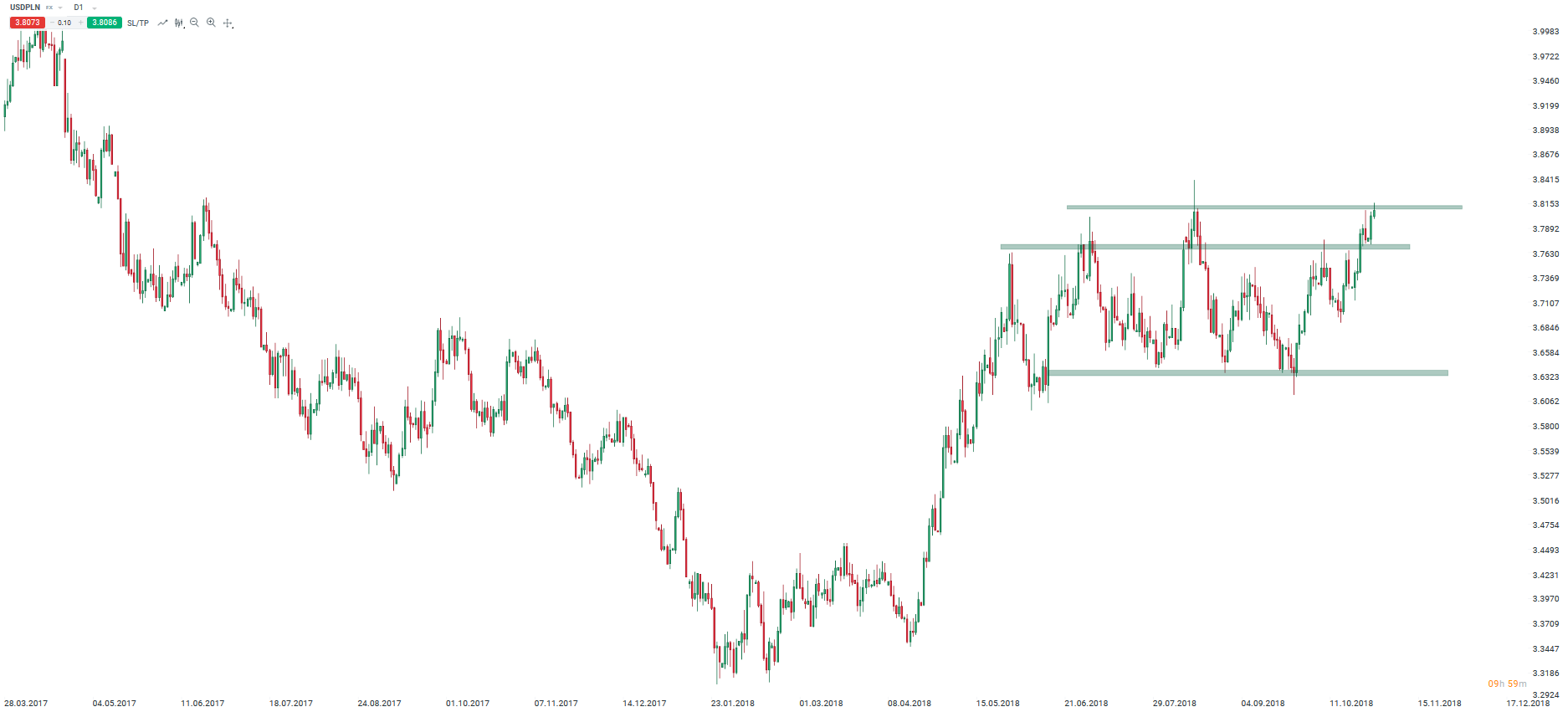 The past few weeks were far from good for the Polish currency as zloty was pressured by the European political turmoil. In turn USDPLN revisited this year’s highs and found itself close to the upper bound of trading range from the past couple of months. Indeed, data from the Polish economy was quite weak recently but given how passive Monetary Policy Council is at the moment PLN is mostly impacted by the global developments. Potential improvement in Rome-Brussels relations could spark an upward move on both euro and zloty. On the other hand, if no progress is made both currencies may remain under pressure. USDPLN moved into 3.80-3.85 range where gains were halted in the first half of the year. Will the upcoming days bring reversal or will the pair climb further towards highs from 2017?