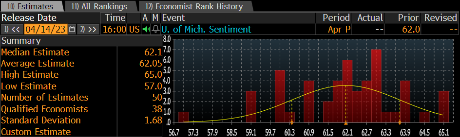 The University of Michigan consumer sentiment is formed on the basis of surveys conducted on a representative sample of 500 Americam households. Inflation outlook is a part of thi report.