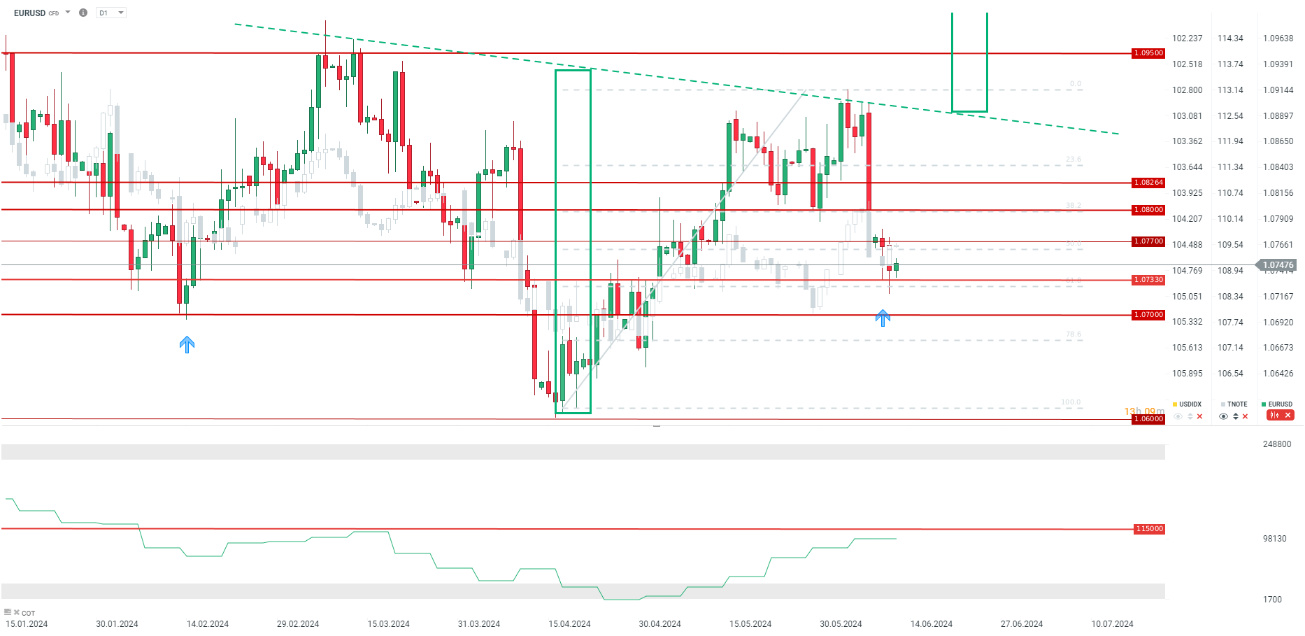 EURUSD has adjusted to higher yields, on the back of phenomenal labour market data and election turmoil in Europe. Nevertheless, there is a chance that EURUSD has reached a local low, at least for the next few hours. Without an upward surprise, EURUSD could check in above 1.0770, although, for example, the lack of a decline in core inflation could lead to another test of the 61.8 retracement of the last upward wave. Ahead of the Fed decision, a new game begins. Although the Fed should remain on a path of reductions, a stronger hawkish turn from expectations cannot be ruled out, which could lead to a test of 1.0700 tonight. It is worth noting, however, that we are forming a reversed head and shoulder formation, the line of which is located near the 1.0900 level, and in the event of actual communication of impending reductions by the Fed later this year, reaching this level and even realizing the formation are possible.