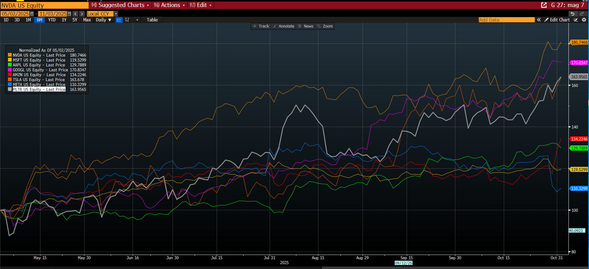 Chart 1: Magnificent 7 and Palantir (grey line)