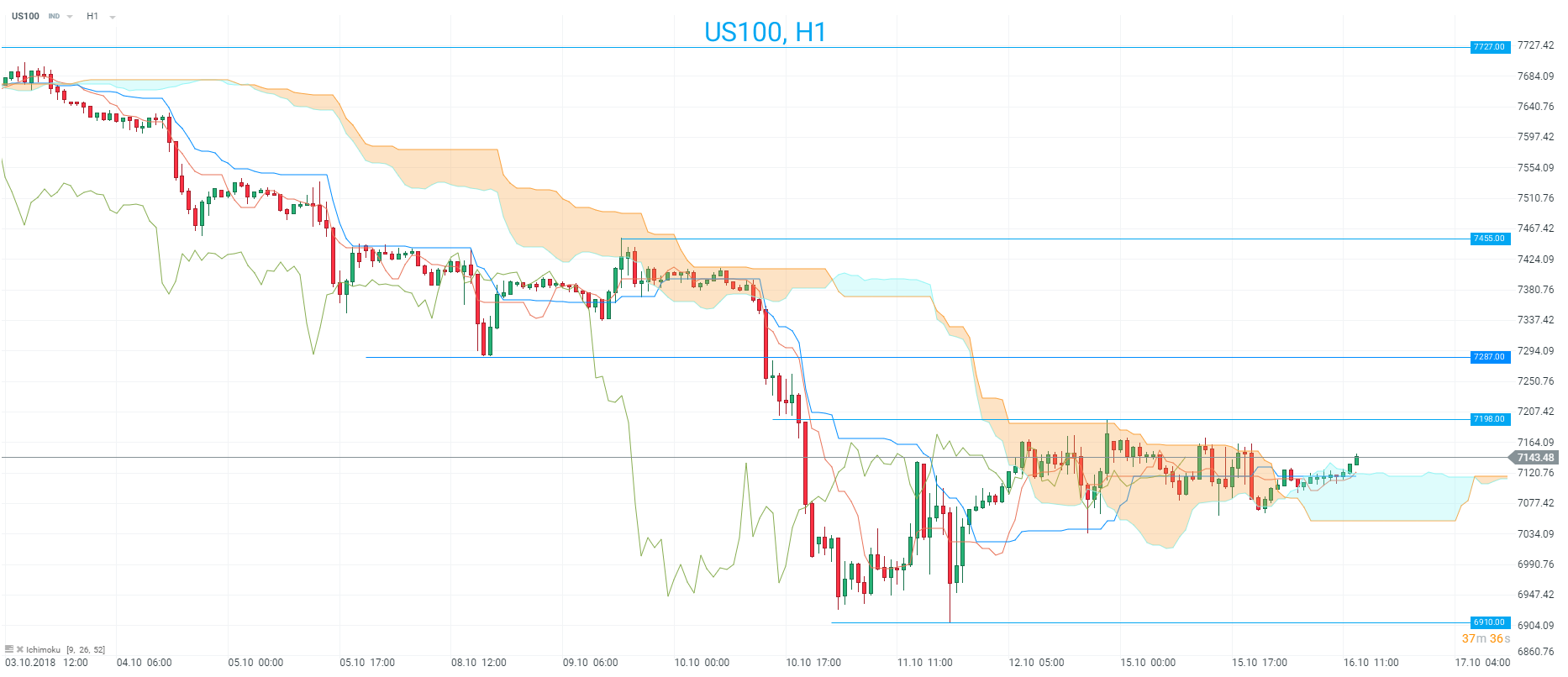 The US100 has broken above the cloud on H1 and in doing so potentially changed its short term trend. However, a break above 7198 is needed before a larger rally can occur. Source: xStation