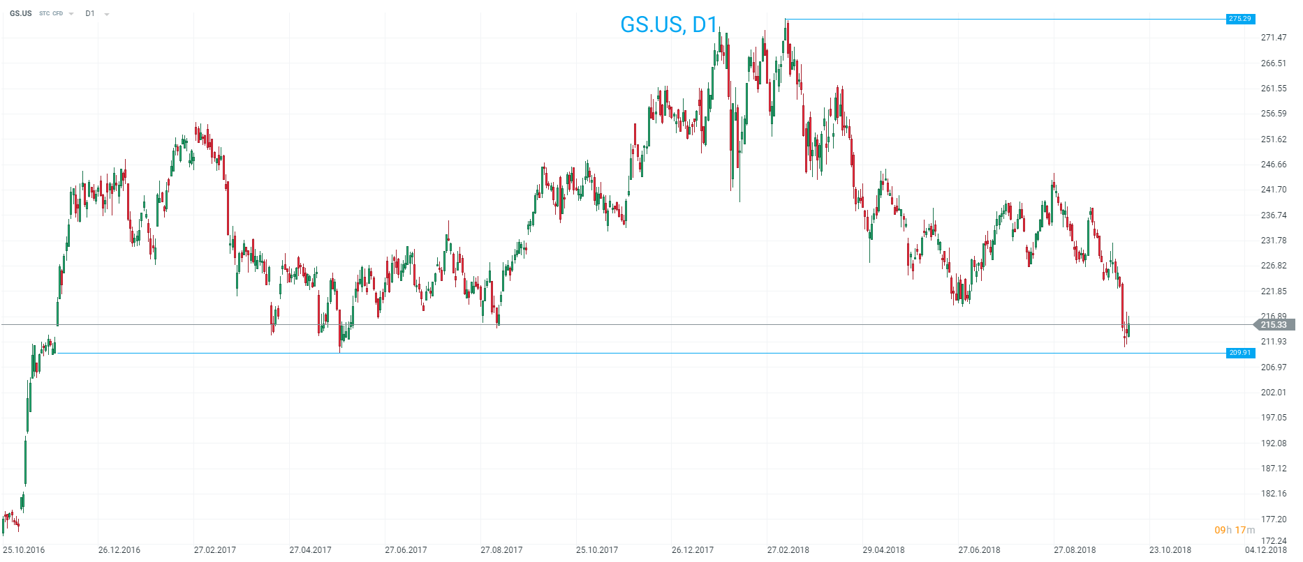Goldman Sachs shares ended yesterday close to key longer term support around 210. The better results have seen the stock called to open higher and as long as this level isn’t breached then some of the recent declines may be recouped. Source: xStation