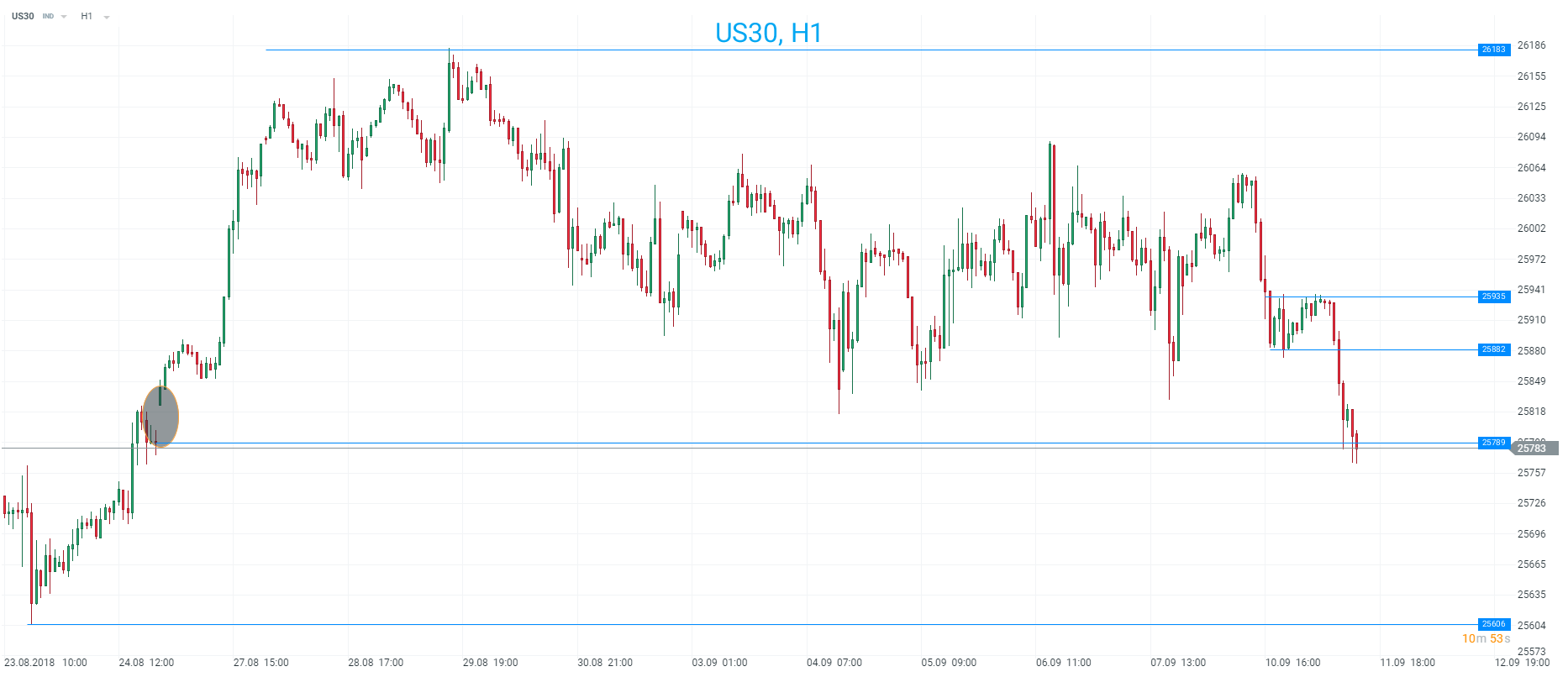 The US30 has now filled the gap higher seen from the end of August at 25789. This could be seen as a crucial level and if buyers fail to step in around here then a larger decline may well ensue. Source: xStation