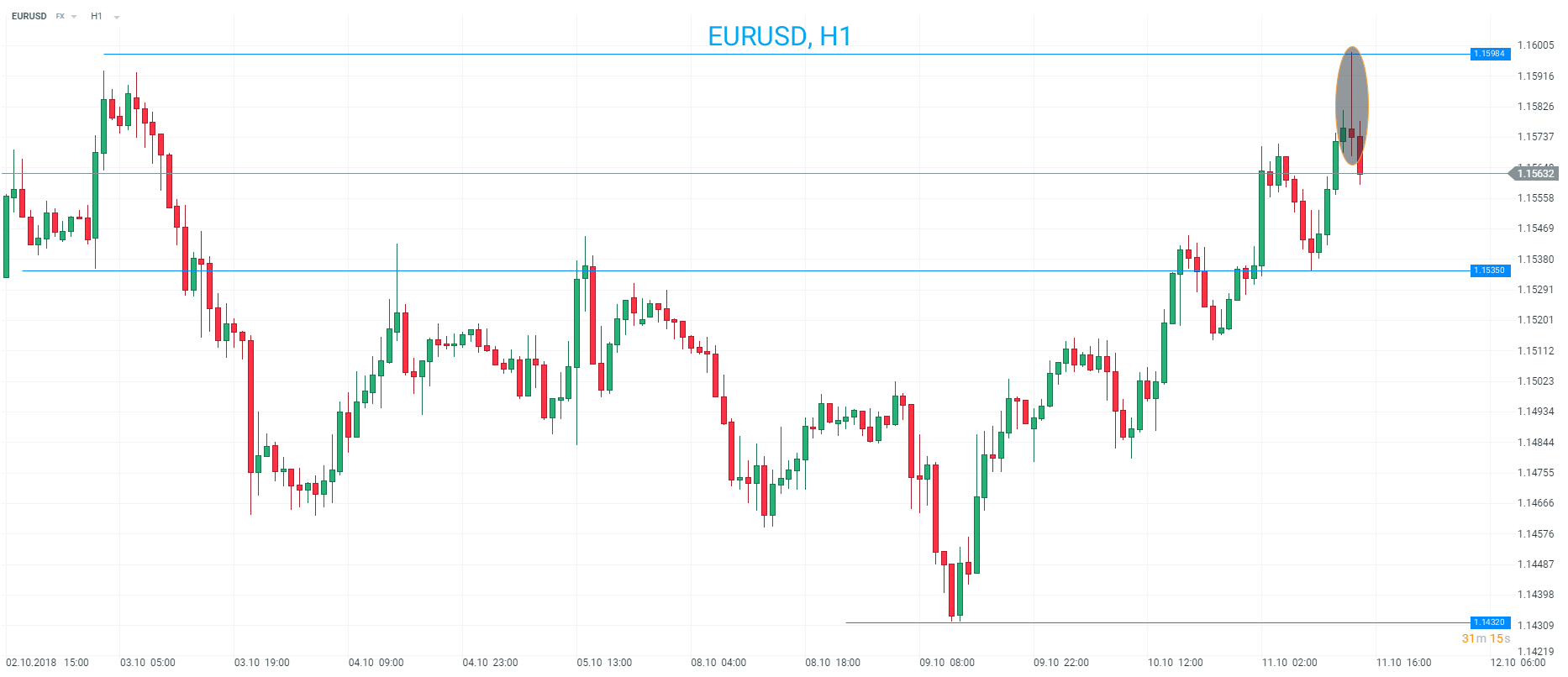 EURUSD rallied higher after the CPI miss, but the market has since fallen back after sellers defended the level around the 1.16 handle. Source: xStation