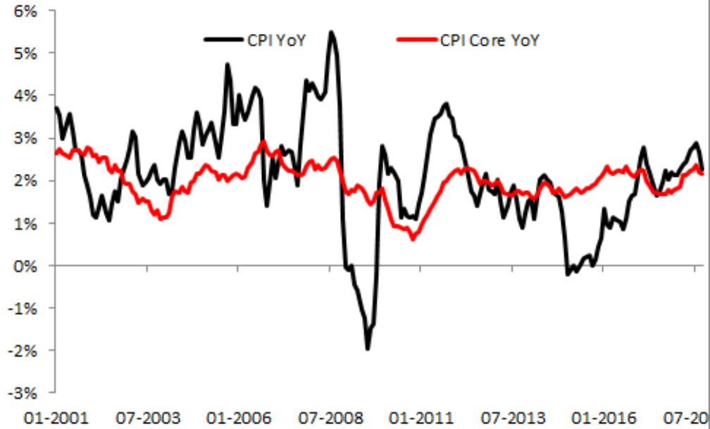 With a tight labour market and well performing economy, the backdrop for the Fed does seem to be in keeping with gradual rate rises as we’ve seen in recent years. The main cause of the continuing hikes has been the rise in inflation and as such today’s CPI figure was keenly anticipated. The release itself showed a year on year increase of 2.3% which was below the 2.4% expected. This print also marked a fair size drop from the 2.7% seen previously. The core reading also came in lower than forecast, with a 2.2% print below the 2.3% expected.