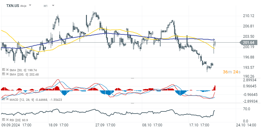 Texas Instruments (TXN.US) gains 3.60% after the company surpassed Q3 expectations, showing a 9% sequential revenue growth. However, its Q4 forecast of $1.07-$1.29 earnings per share and $3.7B-$4B in revenue fell short of analyst estimates, which had predicted $1.35 per share and $4.08B in revenue, indicating potential challenges ahead despite the recent gains.