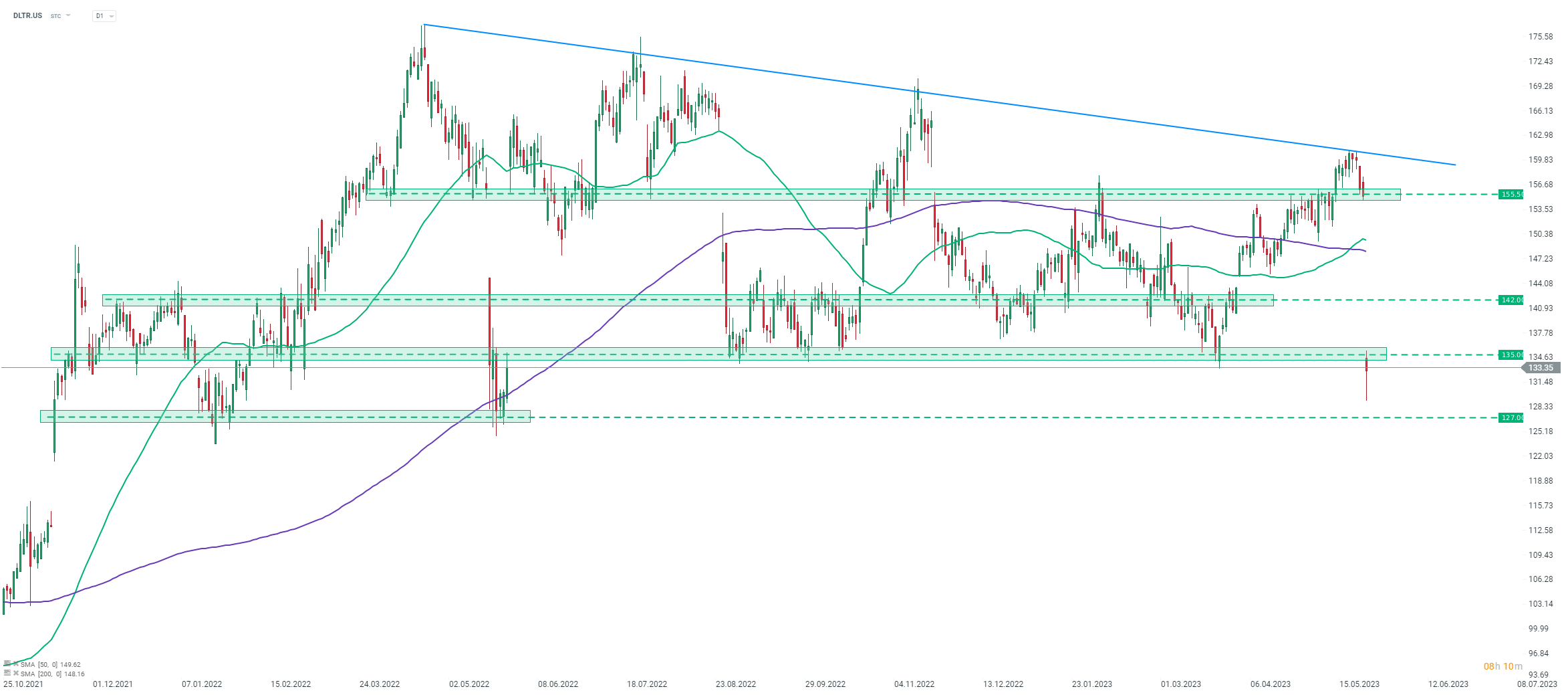 Dollar Tree (DLTR.US) slumped after earnings releases and launched today's trading in the $135 area. However, sell-off continued after the opening of the cash session and now stock is trading below $130 mark - at the lowest level since late-May 2022. Source: xStation5