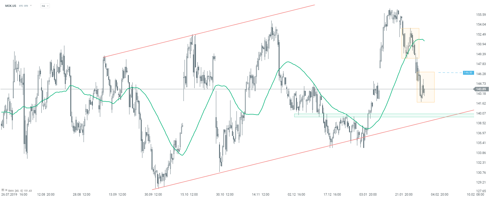 McKesson (MCK.US) has been trading in an upward channel since the end of Q3 2019. The stock has turned lower in mid-January and declined towards the lower limit of the channel. The stock bounced higher yesterday and in case the move is continued today, the upper limit of the Overbalance structure at $146.50 could come into play. Source: xStation5