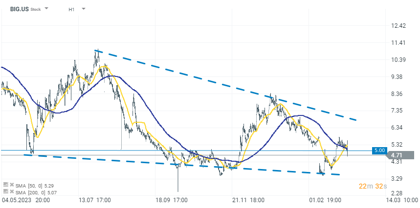 Big Lots (BIG.US) dips over 5,00% ahead of its Q4 earnings report with analysts expecting a quarterly loss. The consensus EPS estimate is at -$0.26, a 7.1% year-over-year improvement, with revenue estimates down 7.1% at $1.43B.