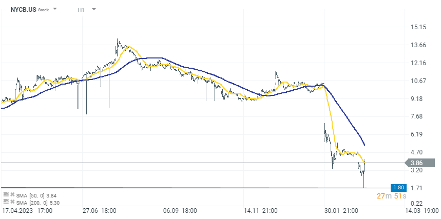 New York Community Bancorp (NYCB.US): Shares of New York Community Bancorp rebounded by almost 10% after a dramatic drop. The bank secured over $1B in capital, notably from Liberty Strategic Capital and other investors. To raise this capital, NYCB will issue shares at $2.00 and offer warrants. The bank has reduced its quarterly dividend by 80% and appointed Steven Mnuchin and Joseph Otting (the new CEO) to its board, aiming for future growth stabilization.