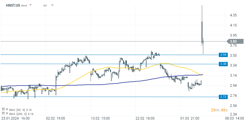 The Honest Company (HNST.US) gains as much as soared 25% following a profitable Q4. The company reported a 10% rise in sales that surpassed estimates. For 2024, the company projects low-to-mid single-digit percentage revenue growth, expecting a softer first half compared to the second. CFO Dave Loretta highlighted the company's focus on profitable growth and confidence in its long-term strategy and financial prospects.