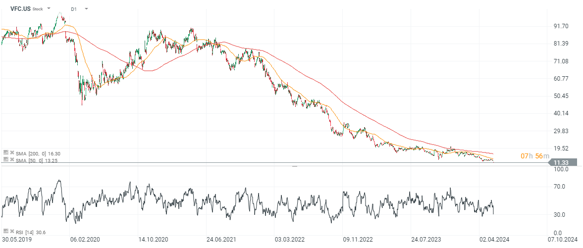 - Under Armour (UA.US) is losing more than 3% today, as Oppenheimer analysts downgraded the sportswear company. Also, the shares of another apparel manufacturer VF Corp. (VFC.US) (owner of Vans and The North Face) are losing nearly 9% today after a surprisingly heavy loss reported in the fourth quarter. The results brought the company's seventh consecutive quarter of declining sales. Williams Trading downgraded its recommendation on the stock to sell.