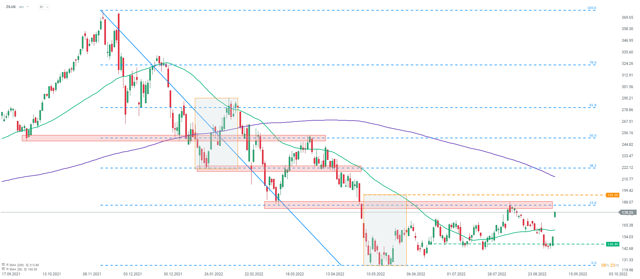 Shares of Zscaler (ZS.US) launched today's trading with an over-13% bullish price gap and continued to gained in the first minutes of trade. Stock is closing in on a resistance zone marked with the 23.6% retracement that halted previous upward impulse. However, a key resistance to watch can be found slightly above this zone at $195 mark, where the upper limit of local market geometry can be found. Source: xStation5