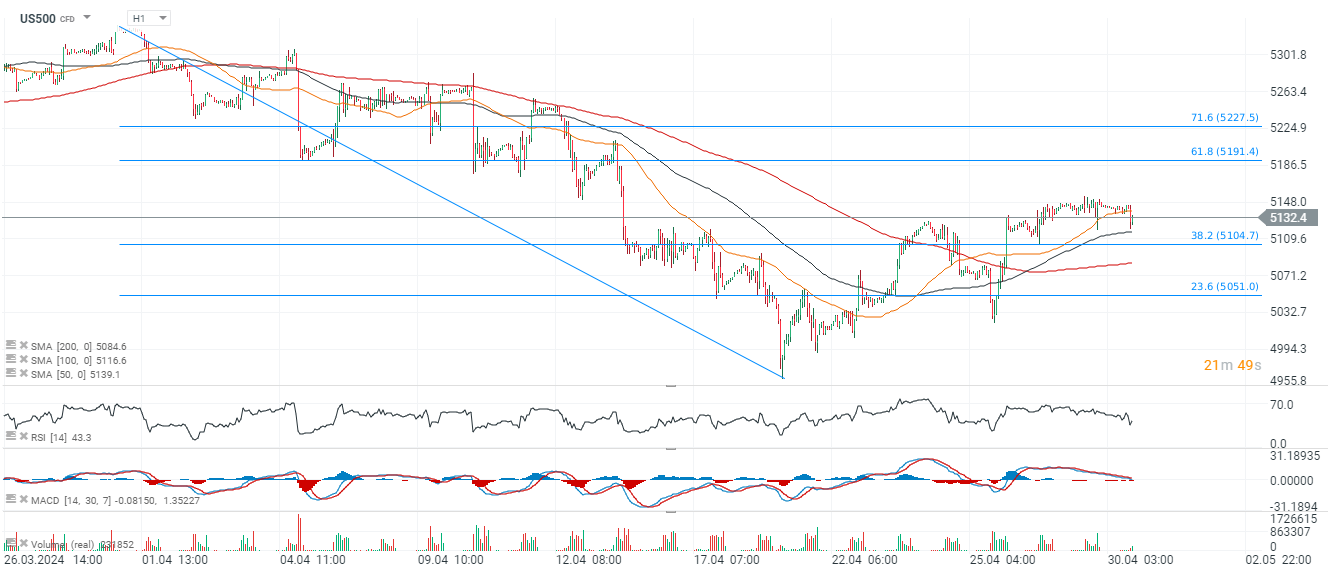 Ahead of Fed Chairman Powell's speech tomorrow, Wall Street is relatively uncertain, and investment managers have reason to fear a return of the Federal Reserve's 'harsher', hawkish narrative, as price pressures in the economy prove more anchored, signaling a 'bumpy' road to the 2% inflation target. Declines are seen from the oil sector to semiconductors and software. After the session on Wall Street AMD (AMD.US), Walmart (WMT.US) and Amazon (AMZN.US) will publish Q1 earnings reports.