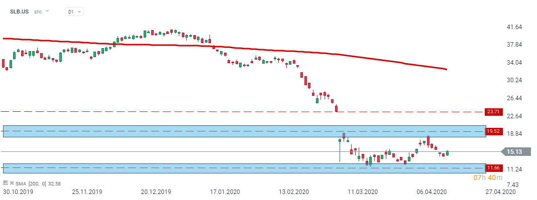 Schlumberger (SLB.US) quarterly report did not make much impact on the company’s share price which is still trading in the middle of the consolidation zone between $11.66 and $19.52. Source: xStation5