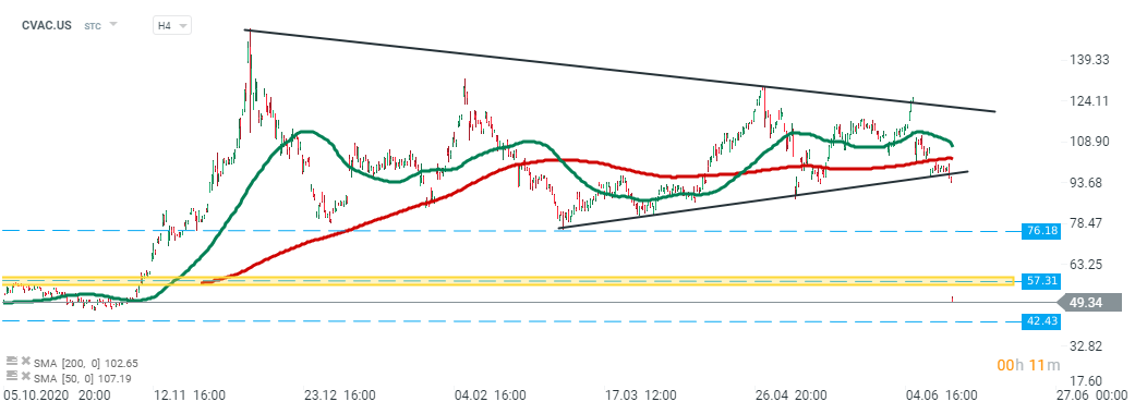 CureVac (CVAC.US) stock launched today’s session with a massive bearish price gap, if current sentiment prevails then support at $42.43 may be at risk. In order to invalidate the bearish scenario, stock price need to at least jump above local resistance at $57.31. Source: xStation5