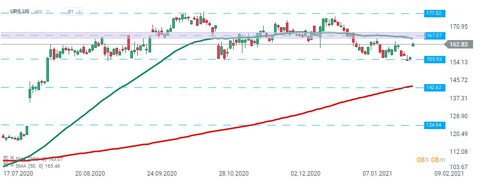 United Parcel Service (UPS.US) stock launched today’s session higher and is approaching major resistance at $167.00. Should a break above occur, then another upward impulse towards all-time high at $177.52 could be launched. On the other hand, if sellers manage to halt declines thereand the downward correction starts, the nearest key support to watch lies at $155.93. Source: xStation5