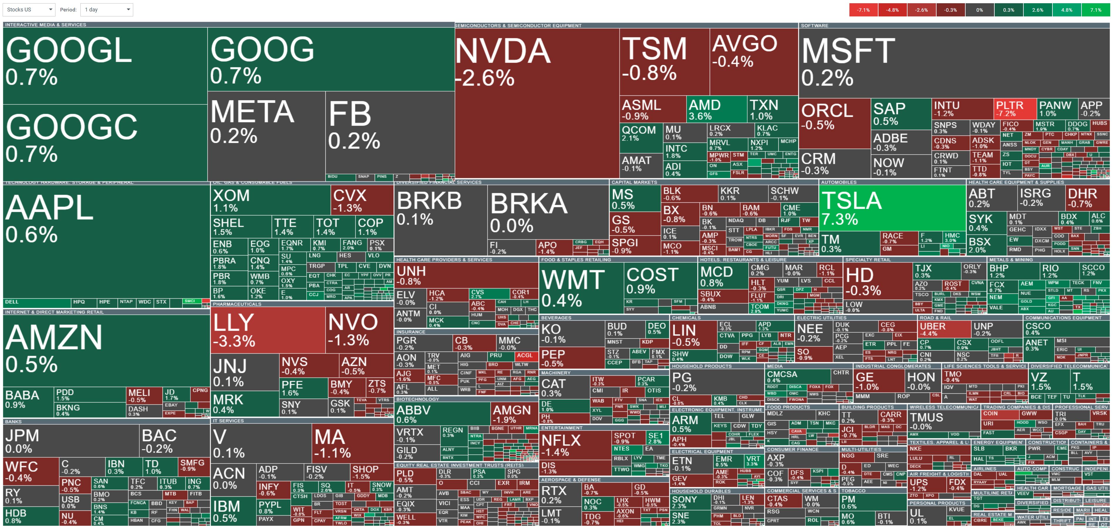 NVIDIA shares declined 2.65% following reports of technical challenges with its upcoming Blackwell server racks. Tesla shares surged 7% in premarket trading following reports that President-elect Trump's transition team plans to prioritize a federal framework for self-driving vehicles. CVS Health shares rose 2% to $54.30 in premarket trading after announcing the addition of four new board members, including Glenview Capital CEO Larry Robbins, as part of a standstill agreement with the activist investor. Super Micro Computer approaches a crucial deadline regarding its delayed 10-K annual report filing with Nasdaq.