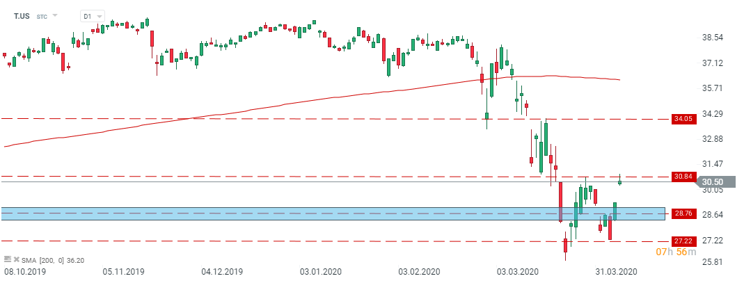 AT&T (T.US) - The Company has released a financial update that considers the impact of a coronavirus outbreak. AT&T confirmed that company’s cash position and balance sheet remain strong, as well as an attractive level of liquidity. The company will continue to pay quarterly dividends to the shareholders.