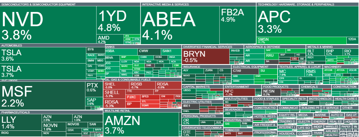 - Technology and cyclical stocks led gains (including Nvidia, Amazon, Tesla, JPMorgan, Boeing)