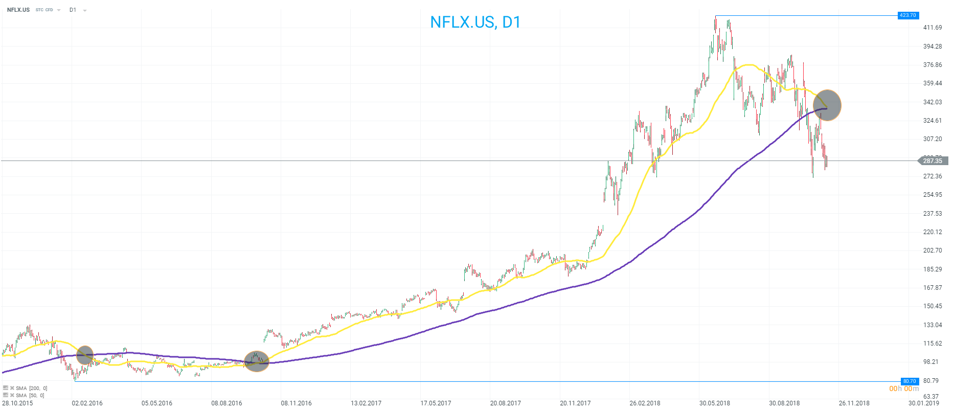 Netflix close to printing “death cross”