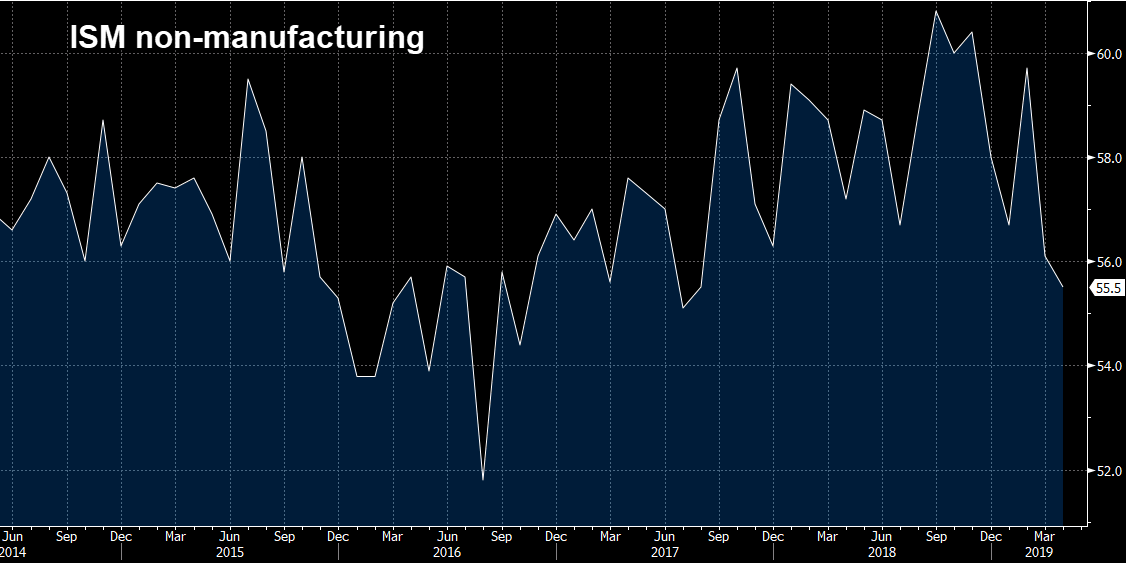 As far as equities are concerned the NFP release provided a nice mix with stellar jobs figures coupled with lower than forecast wage growth. Not long afterwards the most recent ISM non-manufacturing release came in below forecasts, but while it provided some resistance to the advance in stocks, it is perhaps telling that there wasn’t more of a decline. The print of 55.5 for April was below the 57.0 expected and together with Wednesday miss in the manufacturing equivalent suggests that the US economy is slowing. Drilling down into the subcomponents new orders fell to 58.1 from 59.0 prior while prices paid fell to 55.7 from 58.7.