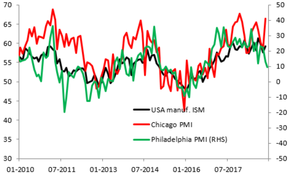 The sharp drop in the Philly Fed release has raised concerns that US manufacturing on the whole may be slowing, and the next ISM release will be keenly viewed. Source: XTB Macrobond